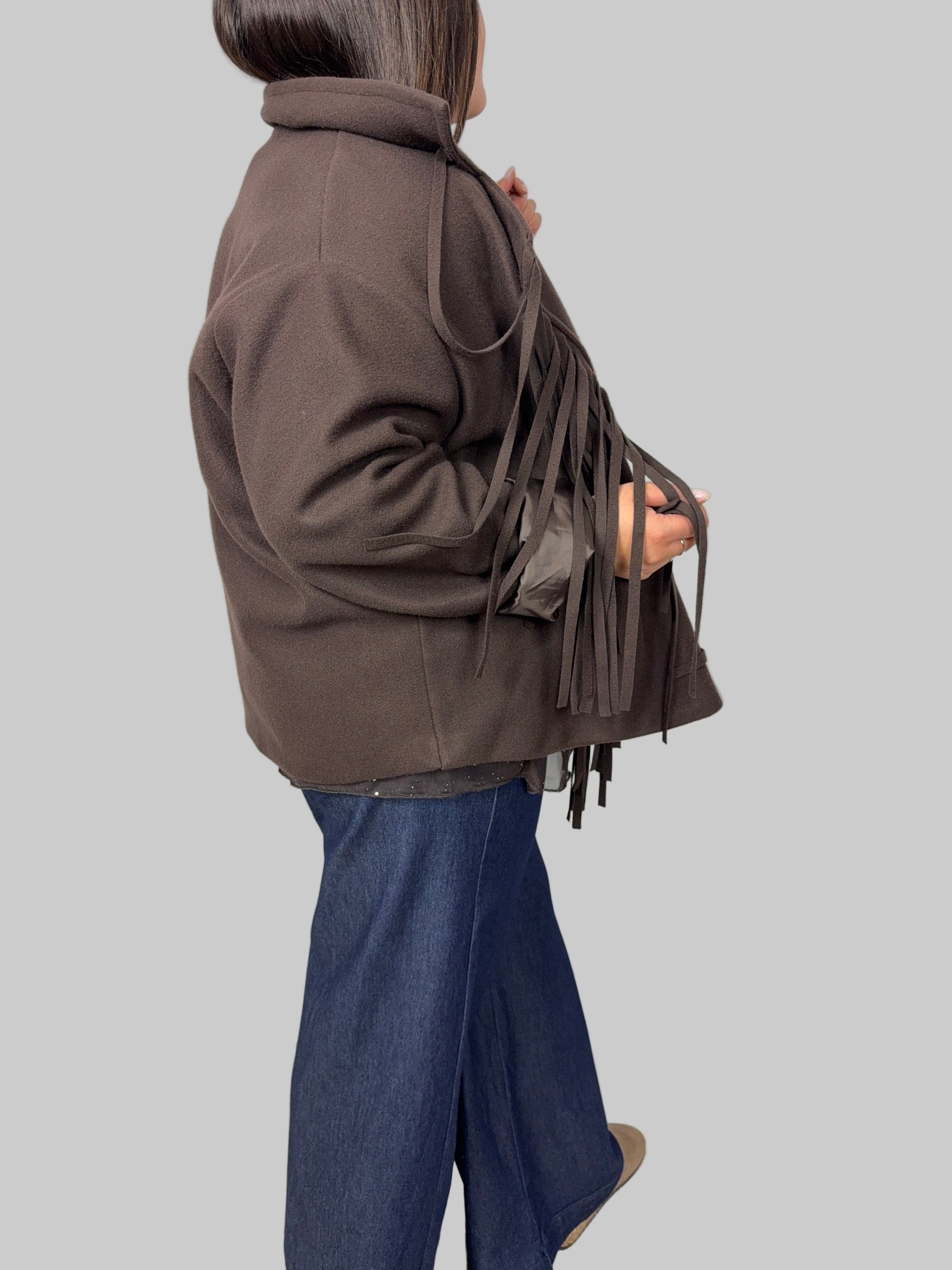 Cappotto di panno con frange.