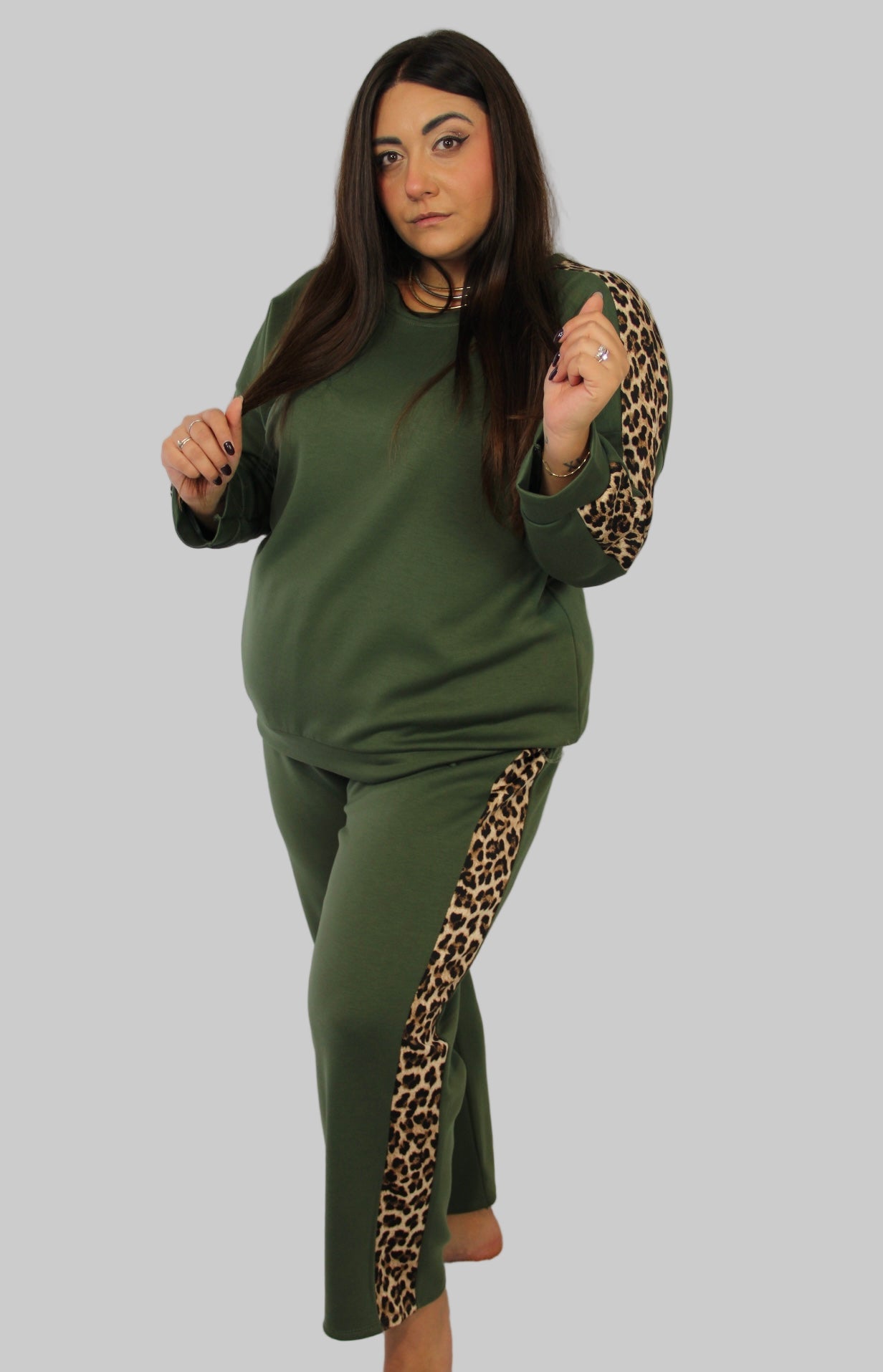 Questa tuta coordinato Elena è perfetta per le donne curvy che vogliono essere alla moda. La sua taglia forte è progettata per adattarsi alle forme del corpo, mentre le bande laterali leopardate aggiungono un tocco di stile. Realizzata con materiali di alta qualità, è comoda e alla moda al tempo stesso.